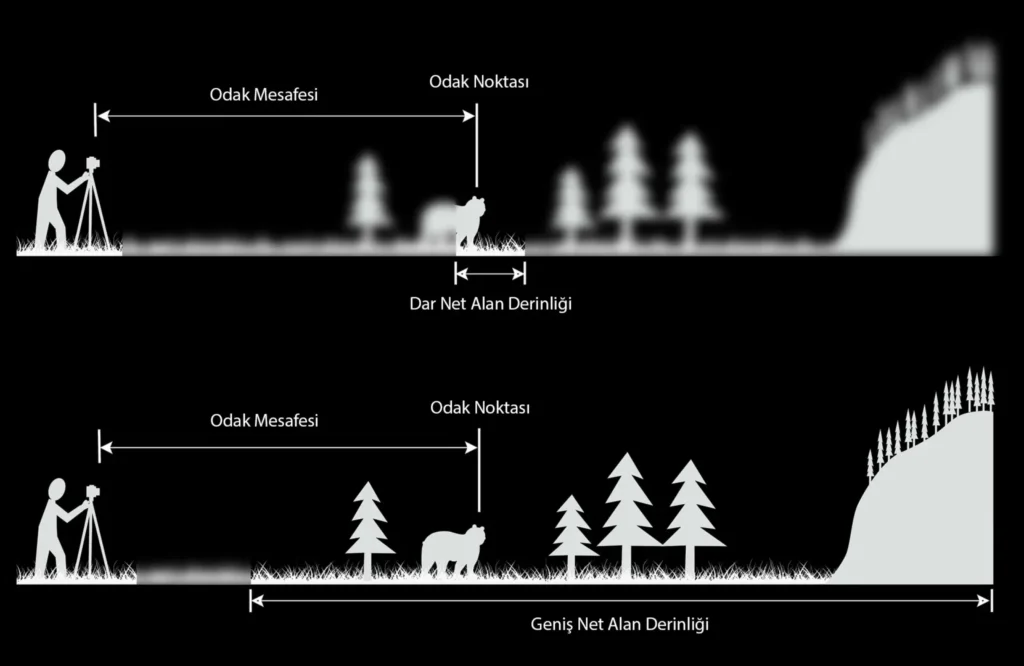 Bu netlik alanı, “net alan derinliği” olarak da adlandırılır ve fotoğrafın kompozisyonunu ve izleyici üzerindeki etkisini belirlemede hayati bir rol oynar. Alan derinliği, diyafram açıklığı (f numarası), lensin odak uzaklığı ve konu ile lens arasındaki mesafeye bağlı olarak değişir: