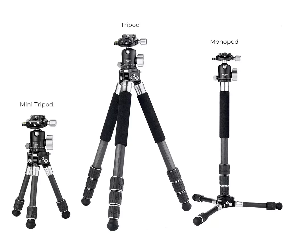 - Karbon Fiber Monopod: Hafiflik ve dayanıklılık için karbon fiber malzemeden yapılmış.
